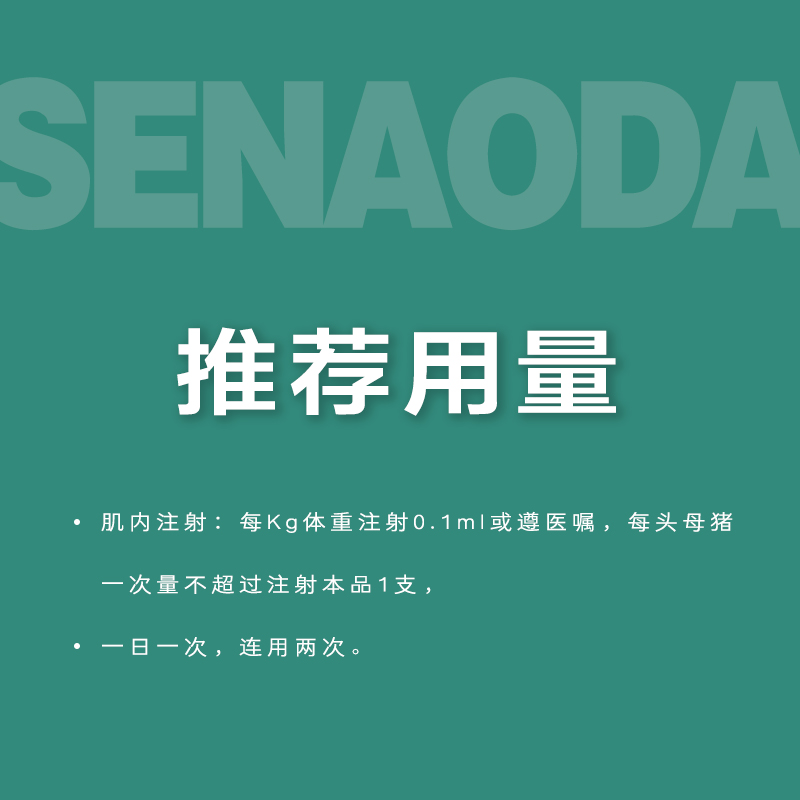 肌內(nèi)注射:每1Kg體重注射0.1ml或遵醫(yī)囑,每頭母豬一次量不超過注射本品1支,一日一次,連用兩次。